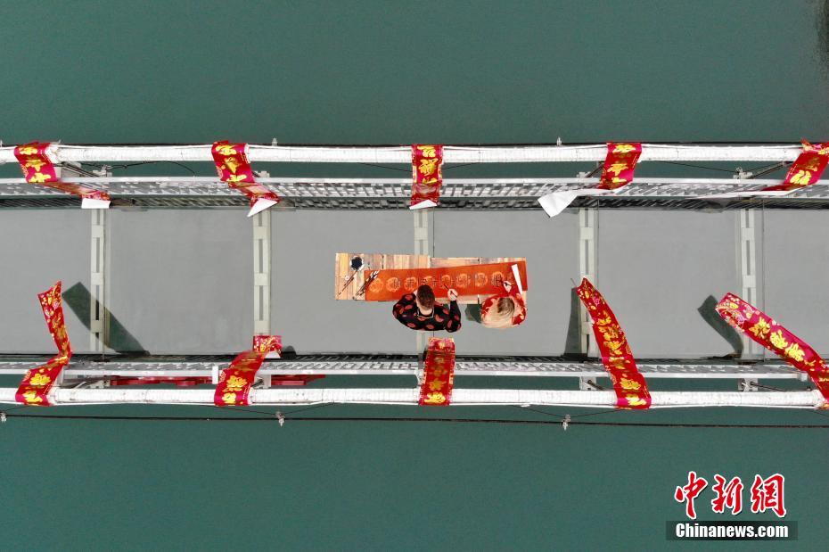长沙玻璃桥上的“年味” 外籍游客学写对联贺新春