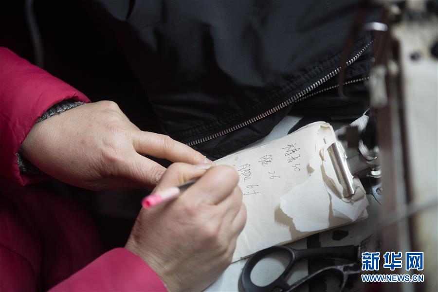 1月28日,费锡凤在小纸条上写下顾客的定制尺寸。 新华社记者 翁忻旸 摄