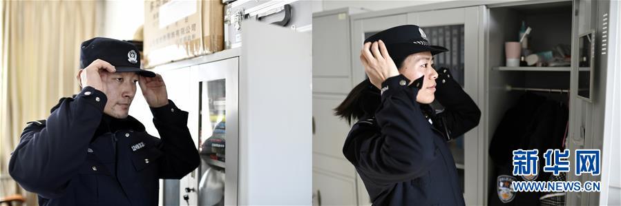 这是一张拼版照片:银川铁路公安处宁夏海原县李旺车站派出所民警苟发伟(左)和银川铁路公安处宁夏同心县同心车站派出所民警罗亚坤(右)整理着装,准备出门巡线(1月23日摄)。新华社记者王鹏摄