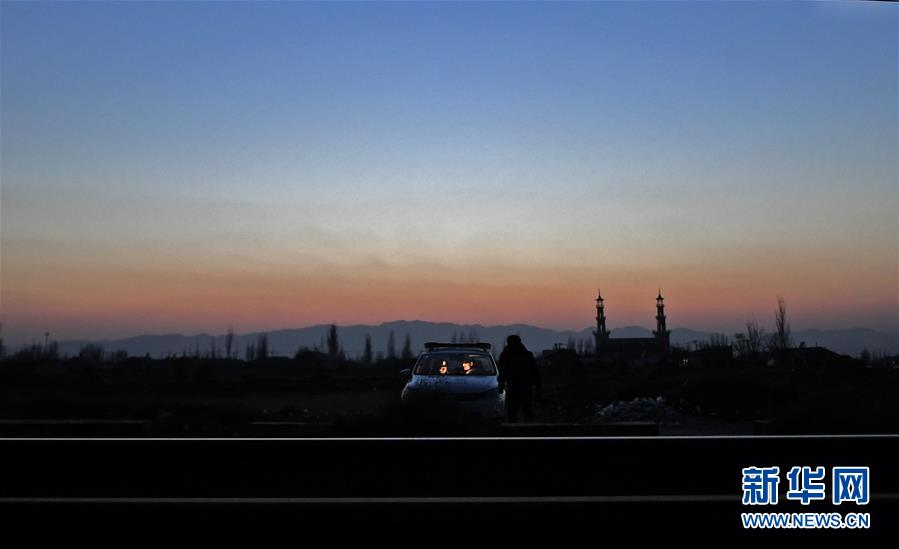 苟发伟与妻子罗亚坤利用工作间隙在车中吃饺子(1月23日摄)。新华社记者王鹏摄