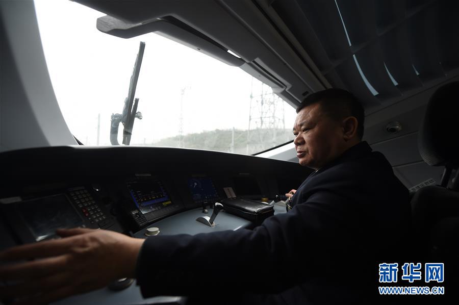 1月29日,卿太刚在设置列车通讯装置参数。 新华社记者唐奕摄
