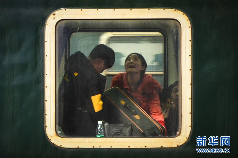 1月29日在浙江省宁波市火车站内拍摄的车厢内的旅客。 春运列车的车窗犹如一个个相框,每个相框内都是一个回家的故事。 新华社发(殷福军 摄)