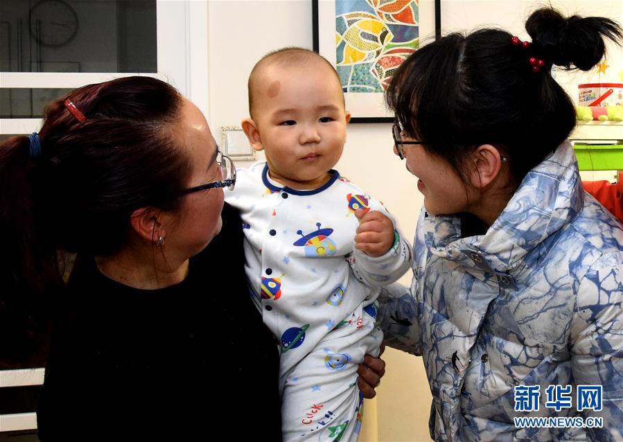 去北京首都国际机场接孙立父亲前,刘洁(右)与孩子告别(1月29日摄)。 新华社发(任超摄)