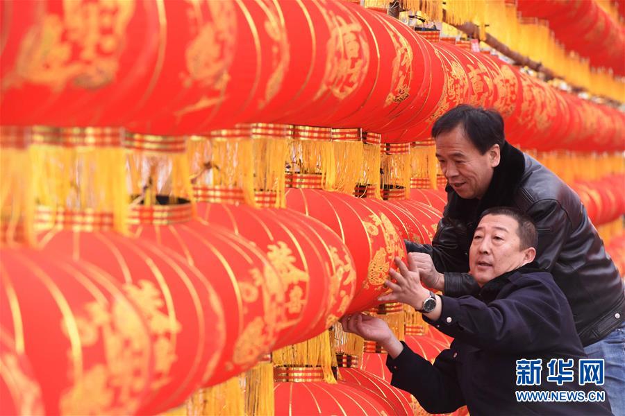 1月30日,大台什社区工作人员在整理红灯笼。 新春将至,内蒙古呼和浩特市赛罕区大台什社区购买红绸,利用往年灯会留下的灯笼骨架、灯口、电线等材料制成1000个灯笼,建成长30米,宽6米的红灯笼走廊,让社区居民感受到浓浓的年味儿。 新华社发(王正 摄)