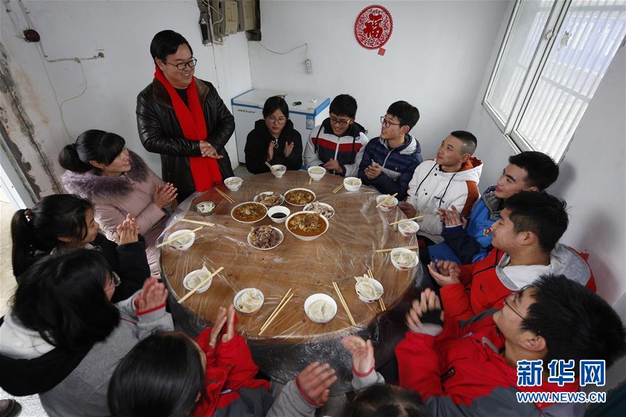 1月30日,孩子们在吴凯、丁德芳家中吃“团圆饭”。 新华社发(颜怀峰 摄)