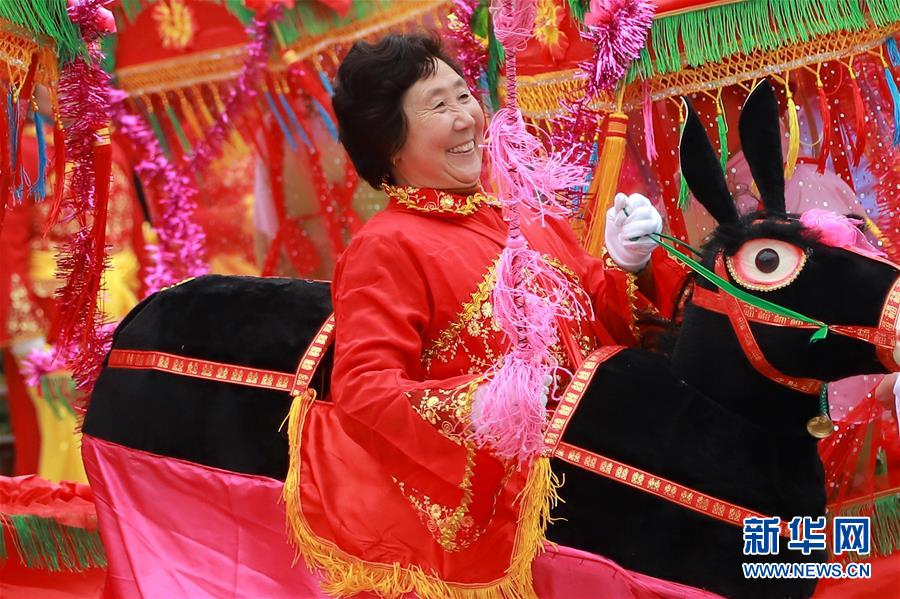 1月30日,民间艺人在山东青岛西海岸新区灵珠山街道排练民俗节目,为新春佳节演出做准备。 春节临近,各地洋溢着喜庆的气氛。 新华社发(王培珂 摄)