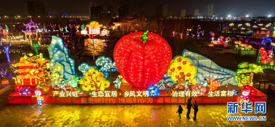 1月30日,人们在山西省万荣县宝鼎公园观赏花灯。新华社发(薛俊 摄)