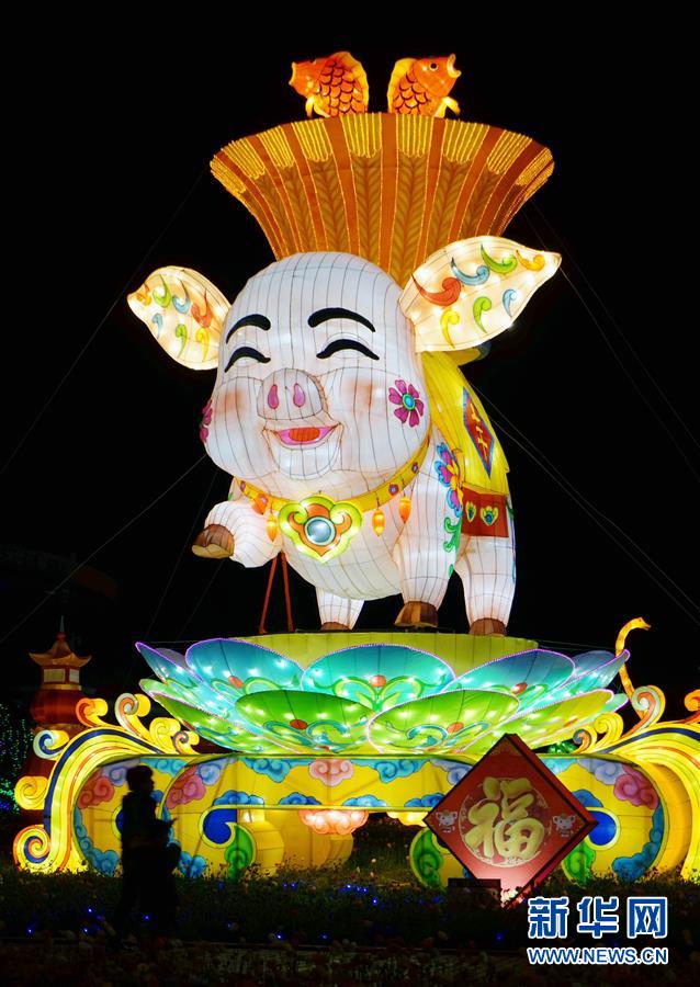 1月30日,人们在云南昆明世博园新春灯会上赏灯。新华社发(梁志强 摄)