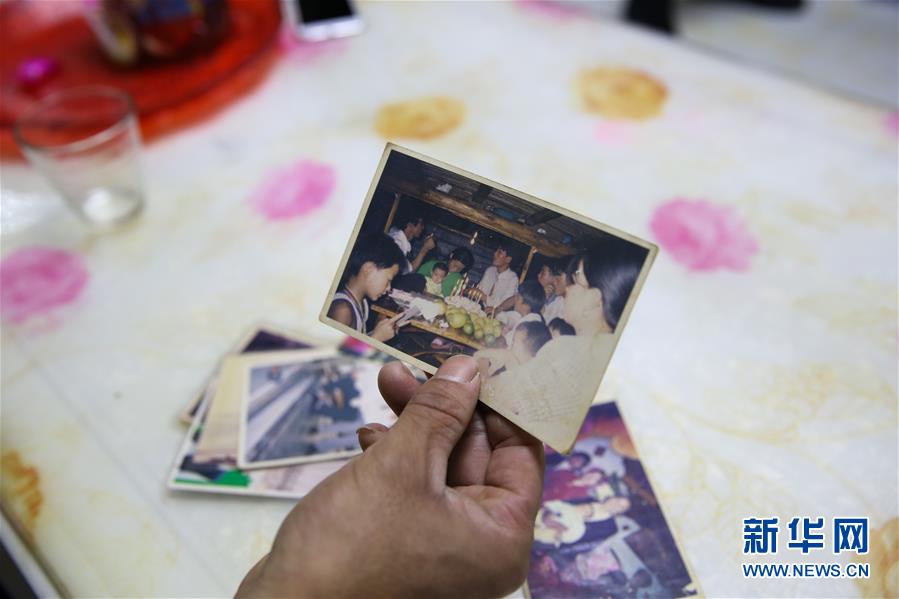 1月14日,陈玉祥在家中展示在“船屋”上生活时的老照片。 新华社记者 潘思危 摄