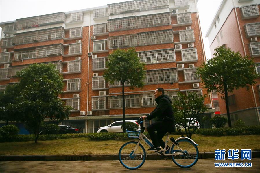 1月14日,陈玉祥骑共享单车回家。 新华社记者 潘思危 摄