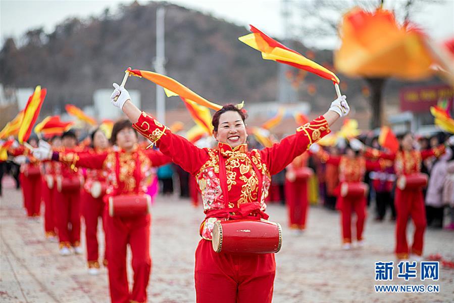 1月31日,人们在山东省荣成市俚岛镇2019年迎新春活动上表演。 新华社发(李信君 摄)