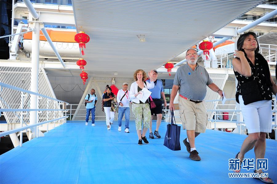 1月31日,在三亚凤凰岛国际邮轮港,“威斯特丹号”游客准备上岸。 新华社发(沙晓峰 摄)