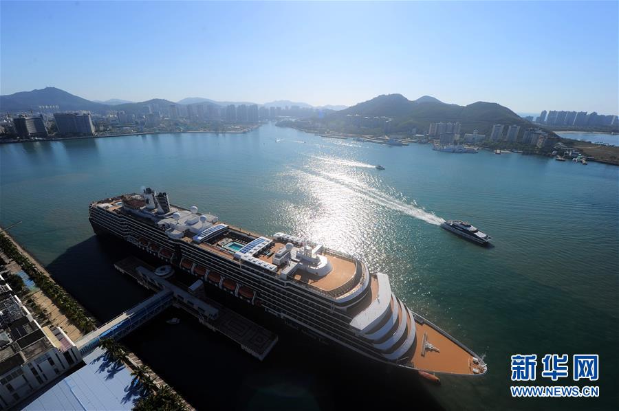 1月31日,“威斯特丹号”停靠在三亚凤凰岛国际邮轮港。 新华社发(沙晓峰 摄)