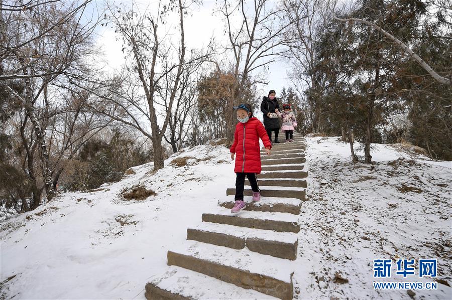 1月31日,市民在银川市中山公园踏雪赏景。 新华社发(冯开华 摄)
