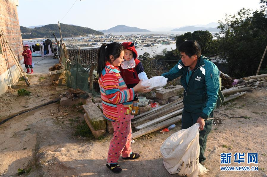 1月28日,石进全在三都镇青山岛孟澳村为海岛居民送邮件。 新华社记者 姜克红 摄