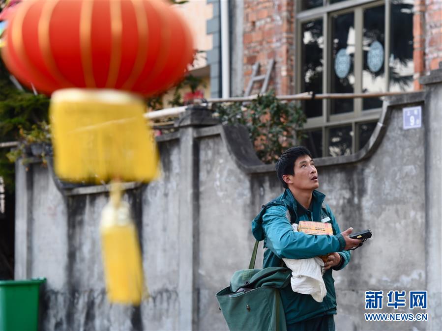 1月28日,石进全在三都镇青山岛青澳村寻找收件人。 新华社记者 姜克红 摄