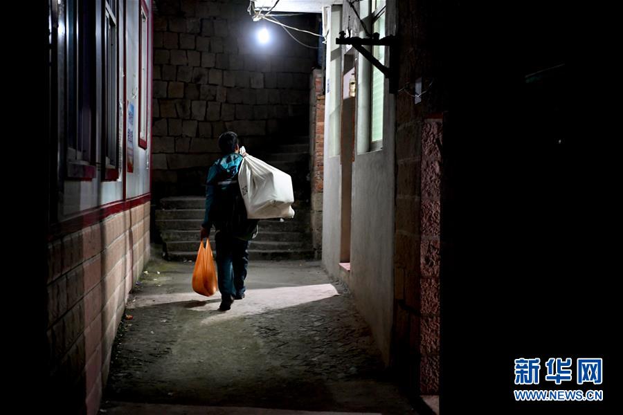 1月28日,石进全背着邮包行走在三都镇青山岛虾荡尾村为居民送邮件。 新华社记者 姜克红 摄