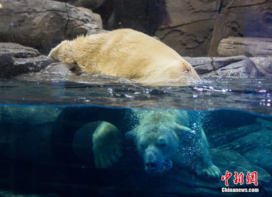 1月31日,一只名为“梦龙”的北极熊在武汉海昌极地海洋公园海洋馆玩耍。春节期间它将与园内的另一只北极熊“静静”一道为游客送上新年祝福。除此之外,“梦龙”还有一个使命——相亲。“梦龙”是一位高大的“帅哥”,来自遥远的俄罗斯,武汉海昌极地海洋馆里的“静静”是一头母熊,两只熊在确定成为伴侣之前还需要一段时间的相处与磨合。中新社记者 张畅 摄