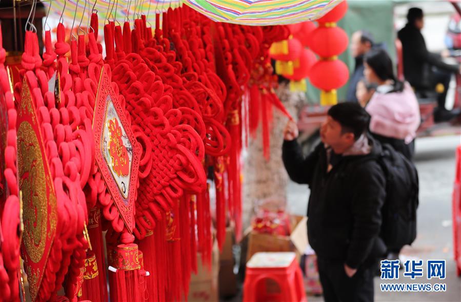 1月31日,人们在贵州省玉屏侗族自治县城区年货市场选购节日饰品。 新华社发(胡攀学 摄)