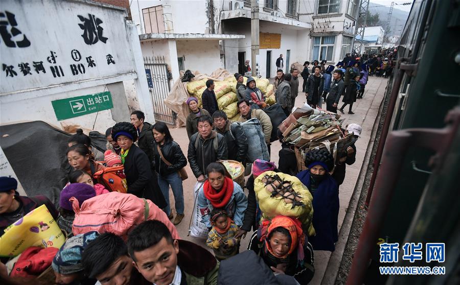 在成昆铁路尼波站,旅客准备登上5633次列车(1月26日摄)。新华社记者 薛玉斌 摄