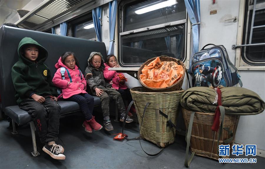 旅客小朋友乘坐5633次列车出行(1月26日摄)。新华社记者 薛玉斌 摄