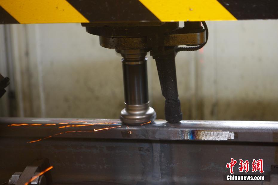 在中国铁路兰州局集团有限公司兰州工务机械段河口南焊轨基地,5根100米长的钢轨将被焊接成一根500米长的钢轨,运到铺设现场后采用闪光焊方式连接。为确保旅客列车的安全舒适,钢轨焊接质量则成为了重点,钢轨放进焊机后,接头处被聚焦,最高温度可达1400摄氏度,在高温下迅速挤压,两根钢轨即可融合成一根。图为精铣机精铣以焊缝为中心两侧各400mm部位。宋佳龙 摄影报道