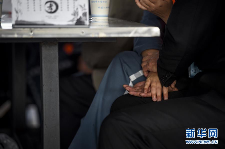 2月1日,宁夏女子监狱举办的春节“监狱开放日”亲情帮教活动上,一名父亲拉着女儿的手交谈。 新华社发(冯开华 摄)