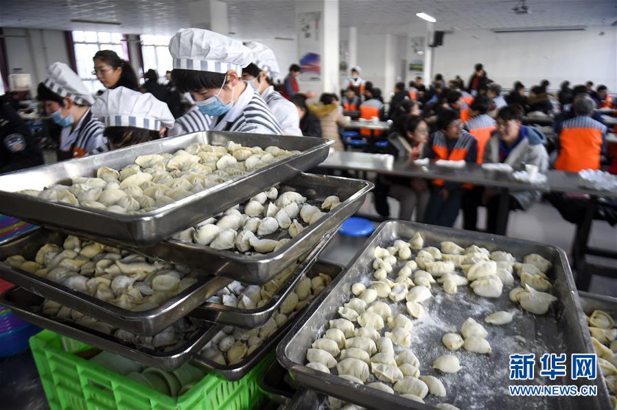 2月1日,宁夏女子监狱举办的春节“监狱开放日”亲情帮教活动上,服刑人员与亲人一起包好的饺子即将下锅。 新华社发(冯开华 摄)