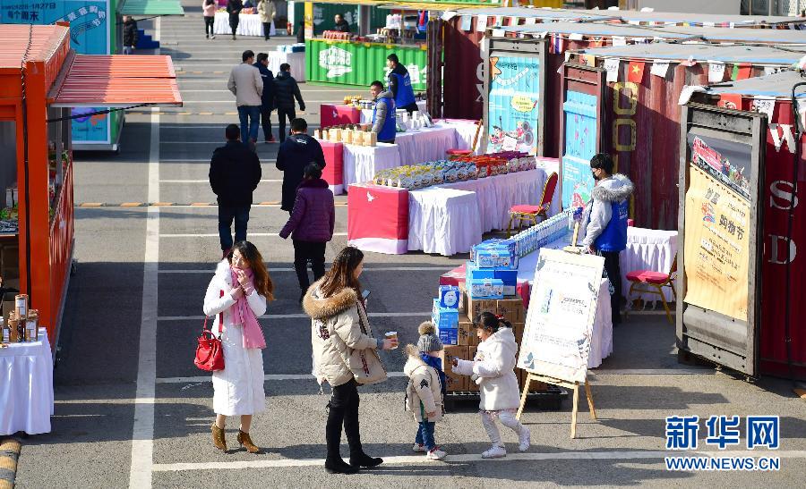 在陕西西安国际港务区,消费者在“长安号”优选进口商品周末集市上参观(1月19日摄)。 新华社记者 邵瑞 摄