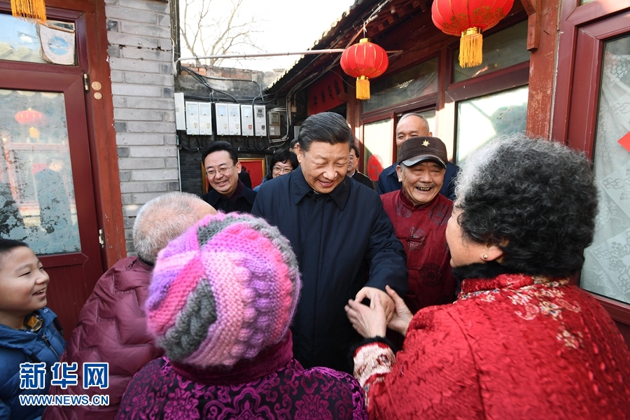 中华民族传统节日农历春节来临之际,中共中央总书记、国家主席、中央军委主席习近平在北京看望慰问基层干部群众,向全国各族人民致以美好的新春祝福。这是2月1日上午,习近平来到北京前门东区,走进居民家中看望慰问,了解居民生活情况。 新华社记者 谢环驰 摄