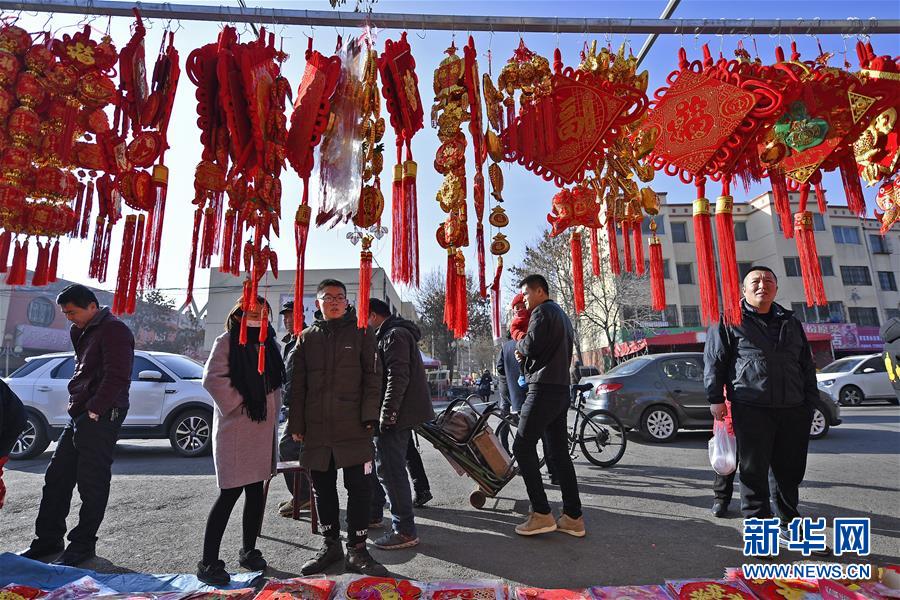 2月1日,贺兰县居民在集市上选购新春挂饰。 新华社记者 王鹏 摄