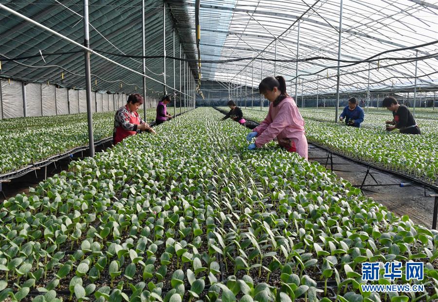 2月1日,滦州市小马庄镇蔬菜专业育苗基地的工人在大棚内管理待嫁接的蔬菜苗。 春节临近,河北省滦州市小马庄镇蔬菜专业育苗基地为保障蔬菜种植户春节后的栽植工作,组织工人抢抓农时,适时育苗、嫁接,呈现出一派繁忙景象。 新华社记者 杨世尧 摄