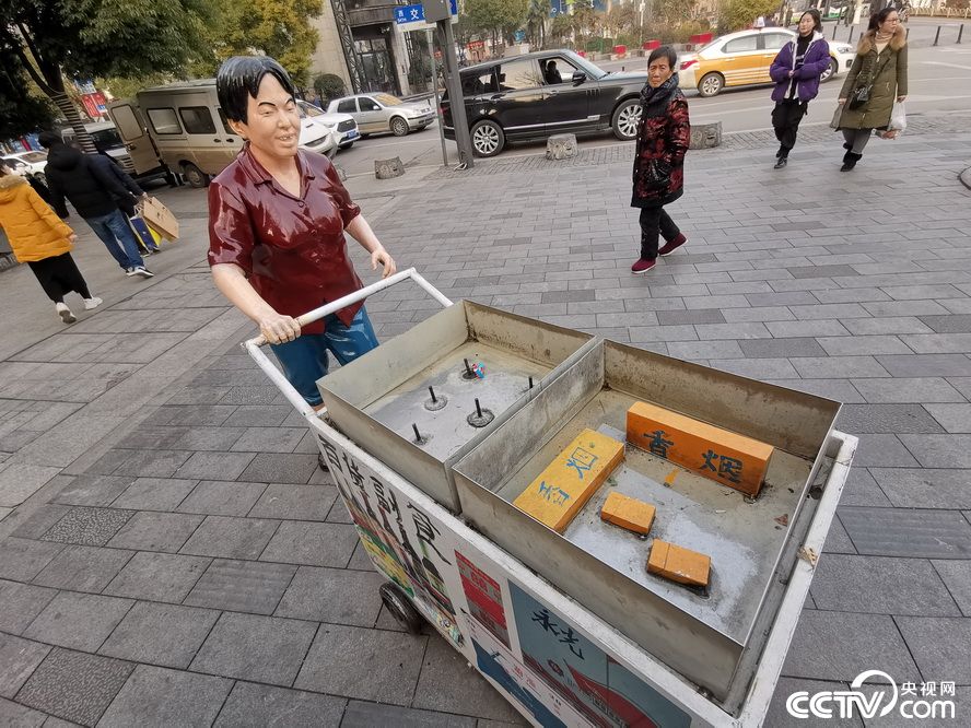 2019年2月1日,武汉,汉口吉庆街汉味风情雕塑群中部的餐桌上,不少铁盘里菜肴不翼而飞,菜盘翘起变形,杂货车雕塑也空了一半,不少人像雕塑上存在微小的裂痕。吉庆街作为享誉全国的夜市,是好多外地游客来武汉的必到之处。网友担心,临街的雕塑群如此破败,会给游客们留下不好的印象。 视觉中国