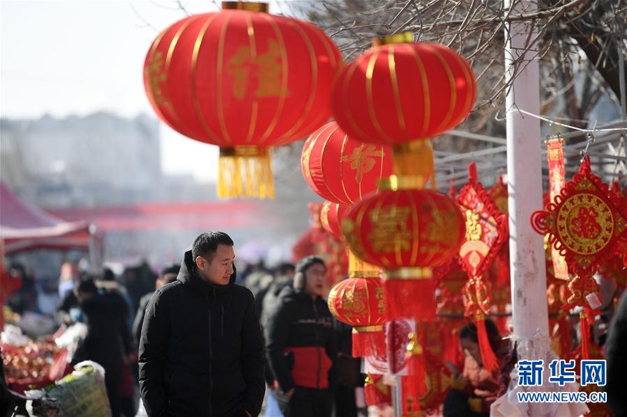 新华社照片,银川,2019年2月1日 赶大集 迎新春 2月1日,贺兰县居民在集市上选购新春挂饰。 春节临近,宁夏银川市贺兰县新春集市上热闹非凡,人们纷纷前来选购年货,迎接新春佳节。 新华社记者 王鹏 摄