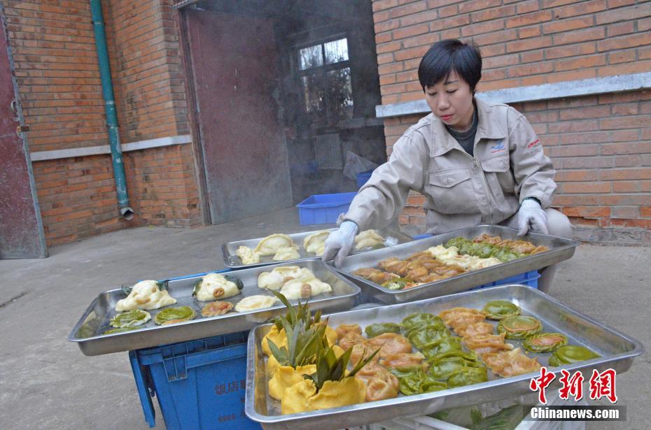 2月2日,春节将至,天津动物园的营养师们,为园区内的动物们准备了蔬菜饺子庆新春。中新社记者 佟郁 摄