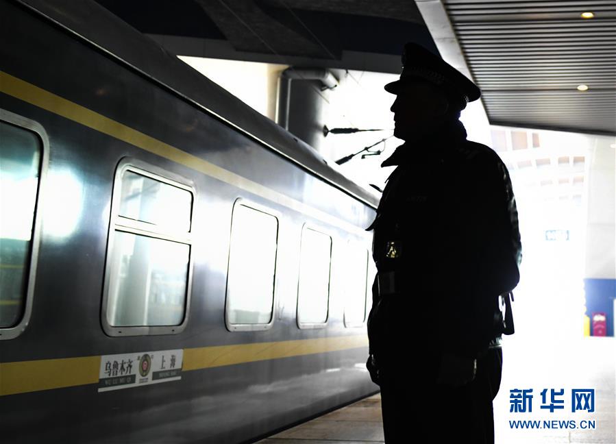 在乌鲁木齐站,周小平目送列车开往车库(1月30日摄)。 新华社记者 王菲摄