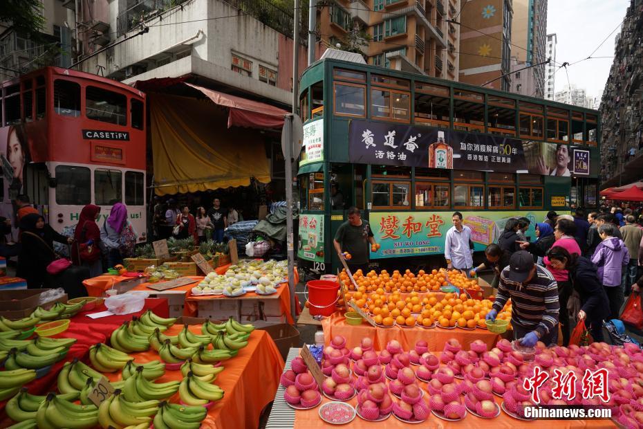 2月3日是农历十二月二十九日,两辆叮叮车同时驶入位于香港北角的春秧街露天街市。这里人头攒动,各种年货琳琅满目,众多市民前来购买年货。中新社记者 张炜 摄