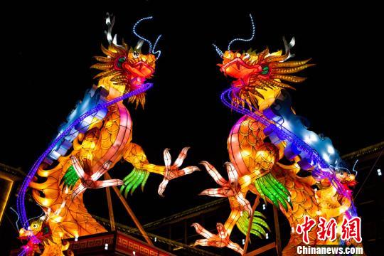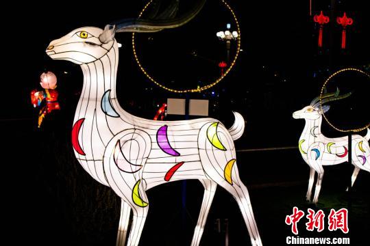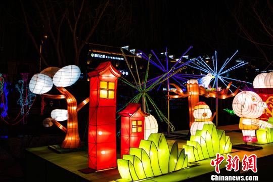 图为以“敦煌文化元素、生肖猪的形象、卡通动漫人物”为主要表现形式的多组大型春节花灯。 王斌银 摄