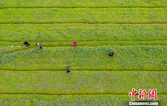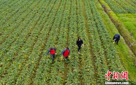 2019年2月2日,江西省新余市仙女湖河下镇礼珠村蔬菜种植基地和垱头村五彩油菜种植基地绿意盎然,农民忙于田间管理,呈现一派人勤春早的乡村画卷。当地努力引导农户参与冬季萝卜、大棚花菜、五彩观光油菜等作物种植,促进农业项目向规模化、标准化、优质化方向发展,促进农民增收,加快农民致富步伐。
