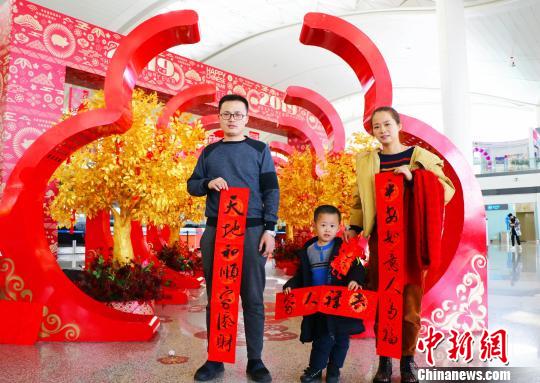 回家路上,乘客收到银川机场赠送的新春对联。银川机场供图