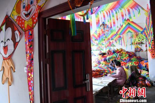 图为水陆村风筝作坊内忙碌的工人。 张浪 摄