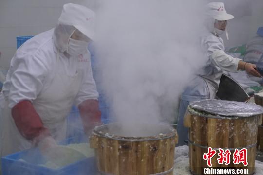 大量的米粉和匀后,进入蒸煮阶段。 孙权 摄