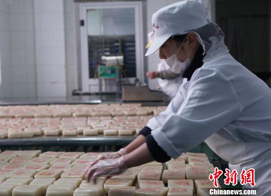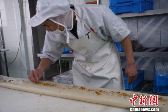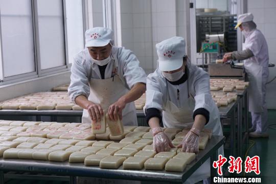 这些年糕晾干后,就将被封装。 孙权 摄