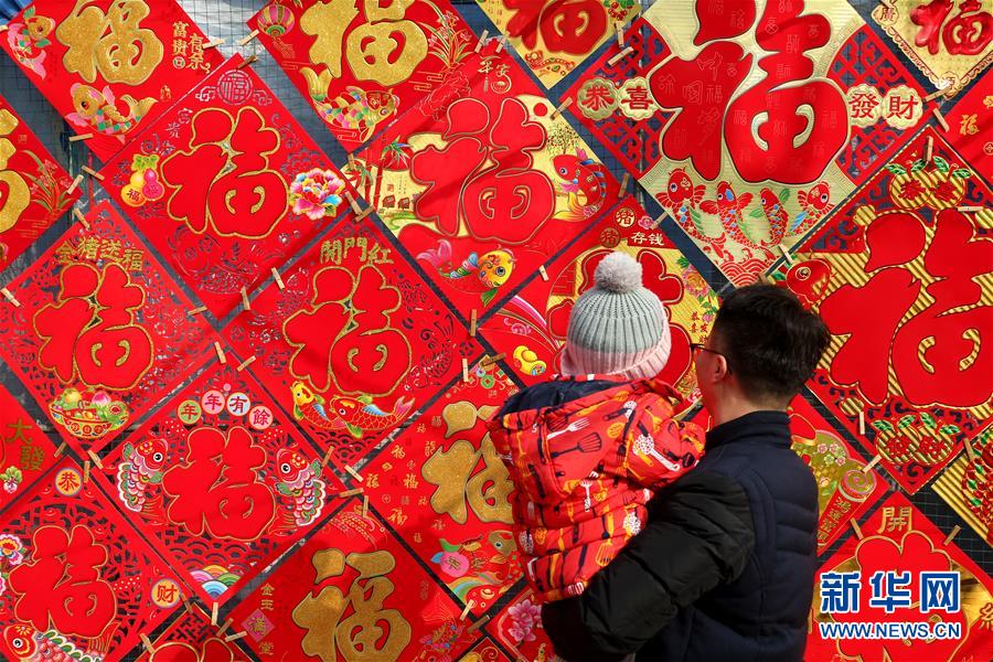 2月4日,市民在山东省枣庄市年货一条街选购新春饰品。 当日是除夕,各地张灯结彩,喜气洋洋。 新华社发(孙中喆 摄)