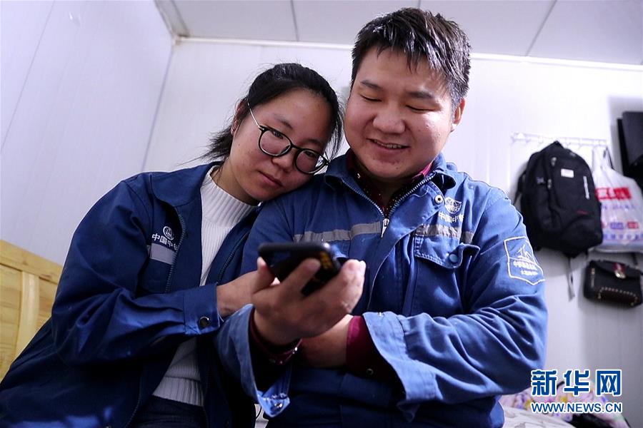 2月4日,曹亚稳和妻子在给妈妈打电话。新华社记者 王安浩维 摄