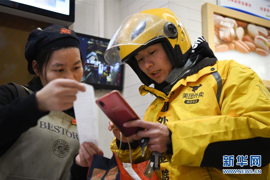 2月4日,丁鸿与商家确认订单取货。 新华社记者 薛宇舸 摄