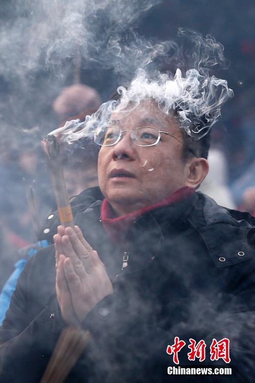 2月5日农历正月初一,北京雍和宫,大批市民赶在新年烧头柱香祈福。中新社记者 韩海丹 摄