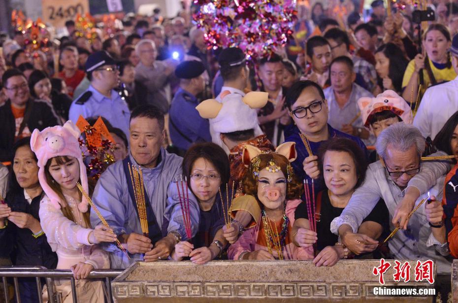 2月4日大年三十晚,香港黄大仙祠有大批善信到场按照传统习俗上“头炷香”。当日晚上11时踏入子时,大批善信们争先上头炷香迎接大年初一,场面十分热闹。中新社记者 麦尚旻 摄