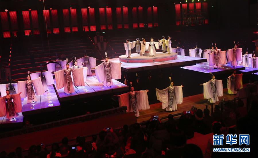 2月5日,游客在孔子故里山东曲阜尼山圣境景区观看礼乐表演。 新华社发(吕卫锋 摄)