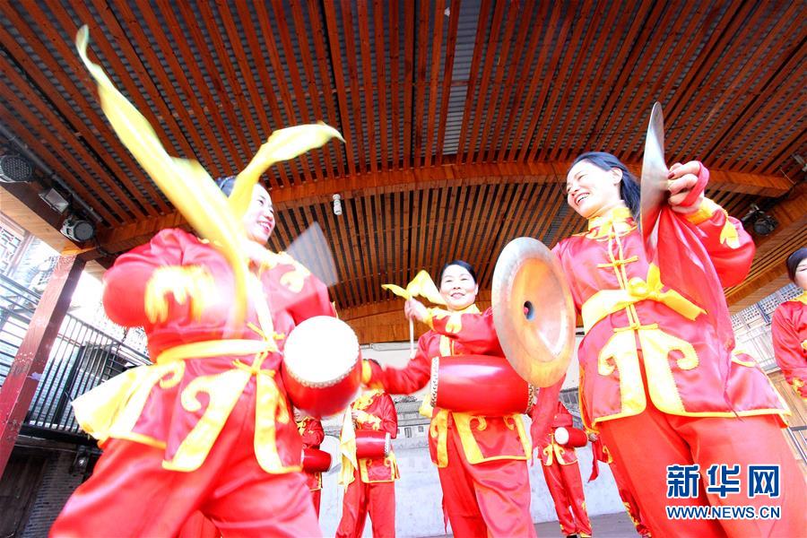 2月5日,浙江台州市路桥区路桥街道古街社区的居民在表演民俗节目。 新华社发(蒋友亲 摄)